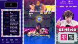 02:46:16Die Partie beginnt mit der Beobachtung, dass der Gegner ein sehr erfolgreiches, auf Raketen basierendes Deck spielt. Der Streamer kopiert das Deck und analysiert den Spielverlauf, bemerkt aber, dass sein Golem immer wieder zu wenig Schaden anrichtet und er defensiv zurückgedrängt wird. Nach einem strategischen Fehler, bei dem er eine entscheidende Rakete verfehlt, geht das Spiel verloren. Die Niederlage wird mit Frustration kommentiert, da der Streamer denkt, er hätte bei besserer Ausführung gewinnen können. Er spielt jedoch weiter, da er jedes Gegner-Deck kopieren muss.