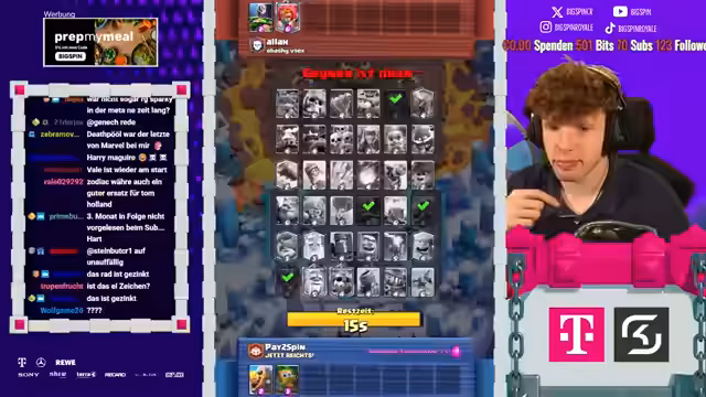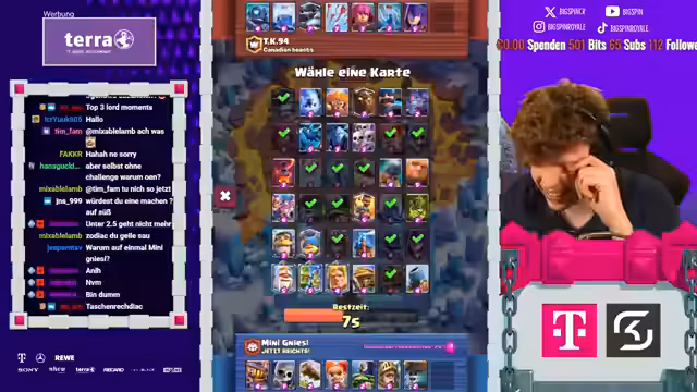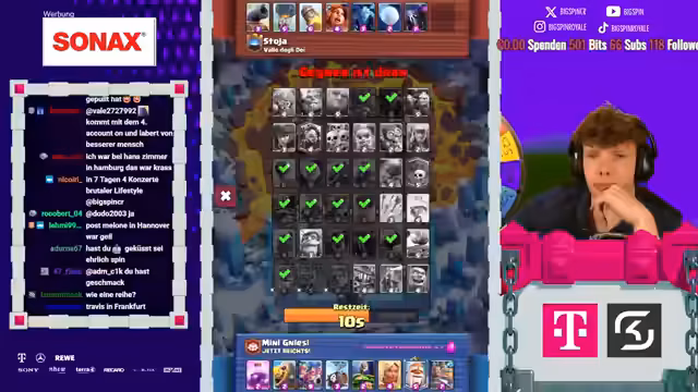 00:00:05Der Stream beginnt mit großer Vorfreude. Das Hauptziel für das heutige Hardcore Free-to-Play Projekt ist es, die 8.500 Trophäen-Marke zu erreichen. Der Streamer plant, gegen 21 Uhr eine 1-gegen-1 Challenge mit dem Glücksrad gegen Zodiac zu bestreiten. Dabei wird er darauf achten, keinen First-Pay zu machen, und eine wichtige Mission für den Stream ist es, den Sparky auf Level 14 zu upgraden.