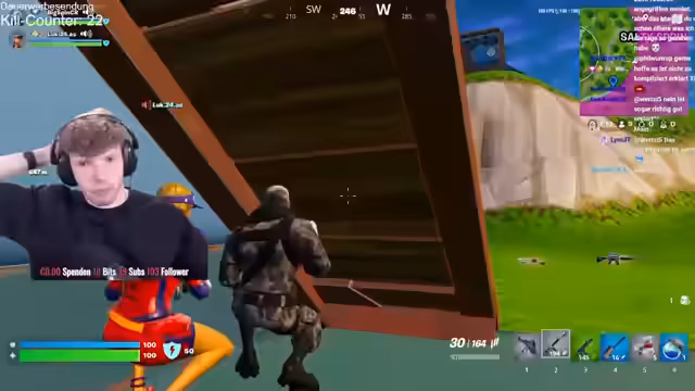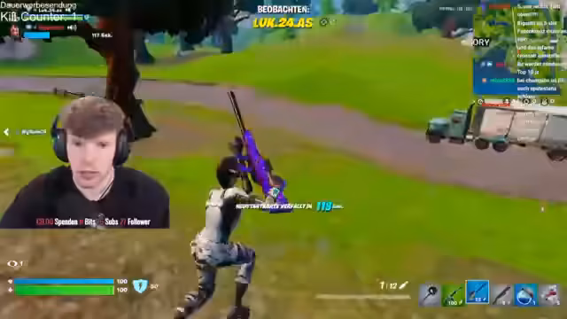 00:11:46Der Streamer beschwert sich über die lange Wartezeit auf eine Runde und die geringe Anzahl der Spieler im gewählten No-Build-Modus. Nachdem er endlich eine Runde gefunden hat, startet das Duo-Setup, doch es gibt technische Probleme, die eine Verbindung von Lukas verhindern. Er muss alternativ auf den Microsoft Edge-Browser zurückgreifen, was ihm missfällt, und trifft Vorbereitungen für einen Kill-Counter im Stream.