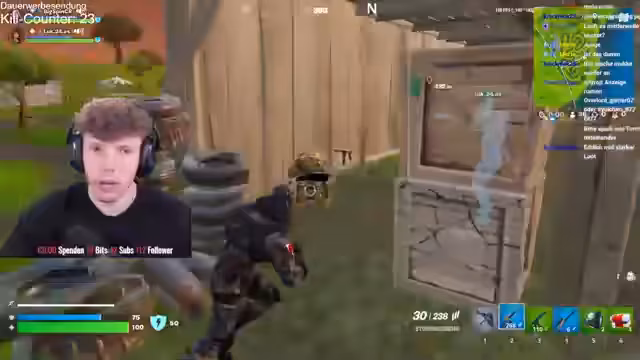 02:39:21Der Stream beginnt mit der Landung und der anfänglichen Loot-Phase in einer Runde. Die Streamer kommunizieren intensiv über ihre Positionen und planen ihre nächsten Schritte. Sie finden Jump-Pads und steigen ein Haus hoch, um von dort einen Kampf zu initiieren. Die Lage wird als unsicher beschrieben, da Gegner von verschiedenen Seiten drohen einzudringen, und sie diskutieren, wie sie sich am besten verteidigen können, während sie gleichzeitig nach Ausrüstung suchen.