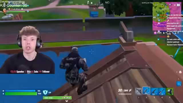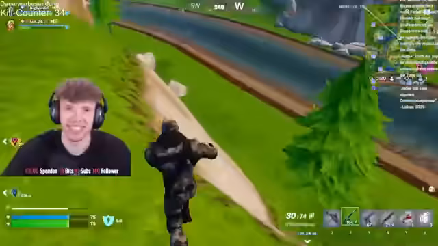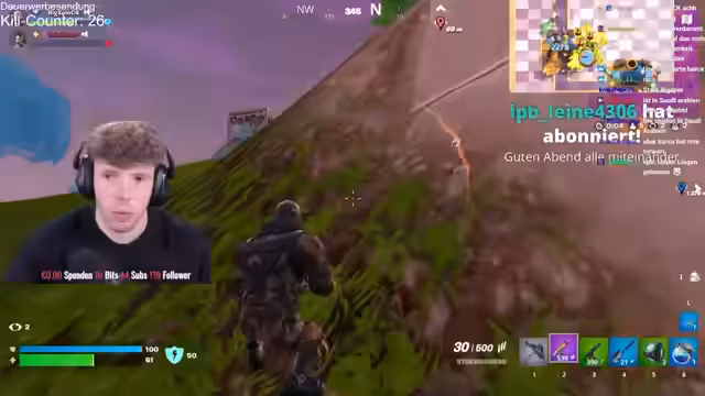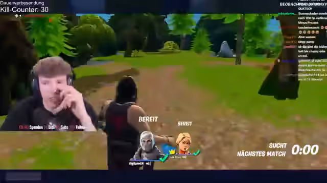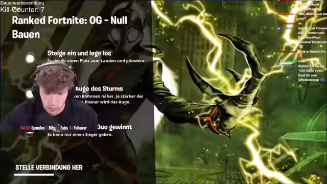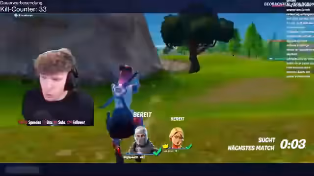 00:00:44Nach anfänglichen technischen Problemen mit dem Ton startet der Stream erfolgreich. Der Streamer kündigt einen 12-stündigen Fortnite-Stream an, bei dem er im Duo mit @lukas_cr versucht, seinen Rang zu verbessern. Nach einigen Placements in Diamant 3 sind Elite und Champion die primären Ziele, wobei der Fokus auf dem Erreichen von Unreal liegt.