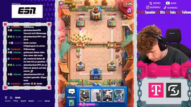 00:38:12Der Stream beginnt mit der Diskussion über die Evolution einer Karte. Nachdem sich der Streamer für die Evo-Musketierin entschieden hat, stellt er die Frage, wie er ein gegen einen Gegner mit Meganischem Ritter und Schweinereiter verliert. Er bittet um praktische Tipps, wie er mit seinem Deck das Maximum herausholen und das Game gewinnen kann. Der Streamer zeigt sich frustriert über seine vermeintlich schlechte Starthand und das von der KI vorgeschlagene Deck.