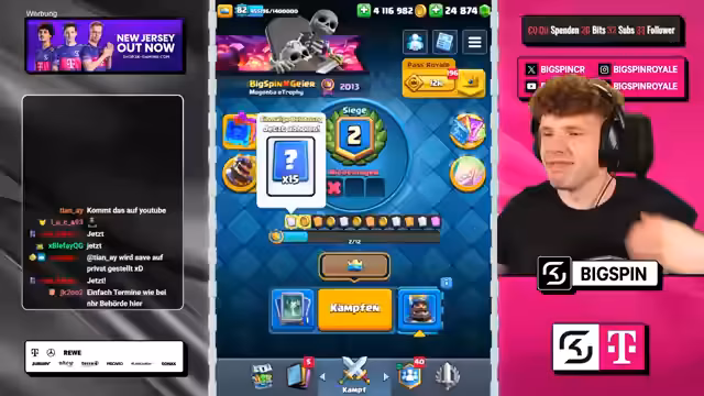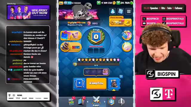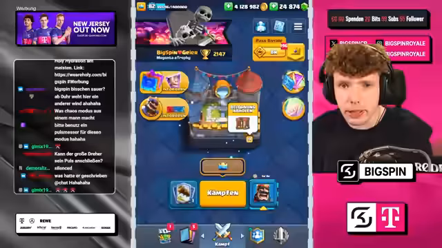02:08:28Einige Niederlagen führen zu starker Kritik am Matchmaking-System und an den Spielkarten selbst. Der Streamer ist der Meinung, er habe in bestimmten Situationen keine Chance zu gewinnen, da ihm die notwendigen Gegenkarten fehlen. Er fühlt sich von Gegnern mit übermächtigen Decks wie Sparky, Feuerball und Lightning konfrontiert und äußert den Verdacht, dass das System ihn absichtlich verlieren lässt, was seine Frustration erhöht.