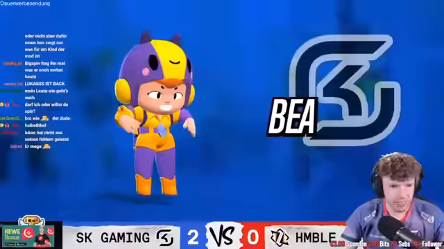 04:08:42Das Brawl-Ball-Spiel geht in eine Verlängerung, was die Intensität nochmals steigert. Das Match ist geprägt von vielen Toren, Verteidigungen und einem ständigen Hin und Her. Beide Teams agieren sehr nervös und aggressiv. SK Gaming kann sich am Ende durchsetzen und gewinnt knapp mit 2:1. Kommentatoren und Streamer sind von dem „kranken“ und „insanen“ Spielverlauf beeindruckt und heben die hohe Qualität des Brawl Stars E-Sports hervor.