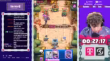 08:32:55In Liga 6 gelingt mit einem Royal Gothic-Deck ein knapper Sieg gegen ein Drill-Deck. Trotz einer defensiv schwachen Anfangsphase nutzen der Streamer die Royal Hawks und Valkyrie effektiv, um den Turm des Gegners zu zerstören. In Liga 7 verliert er jedoch ein hartes Game gegen ein Thrill-Deck mit Evo-Snowball, da der Gegner das Spiel clever kontrolliert. Trotz der späten Niederlage bleibt die Stimmung ruhig und der Fokus liegt auf dem nächsten Versuch.