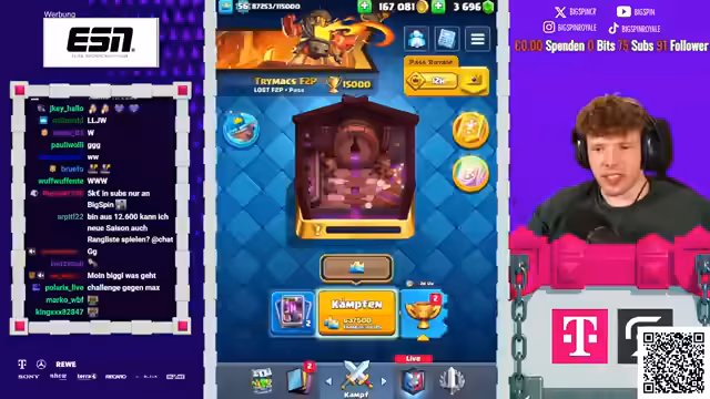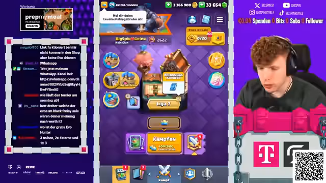 02:20:41Nach einer langen und herausfordernden Phase erreicht der Spieler das Ziel von 15.000 Trophäen, was als großer Erfolg gefeiert wird, insbesondere da es sich um einen „Free to Play“-Account handelt und dies kurz vor einem wichtigen Update geschieht. Die Errungenschaft ermöglicht den Zugang zur Rangliste und schaltet Belohnungen wie eine magische Truhe mit 250 Joker-Karten frei. Es wird über die zukünftige Deckstrategie diskutiert, insbesondere die Wahl zwischen Evo-Ritter und Valkyrie, wobei die Valkyrie als potenziell stärkere Karte angesehen wird, sobald sie auf ein höheres Level gebracht werden kann. Die Möglichkeit, einen Heldenritter gratis zu erhalten, könnte zukünftige Deckanpassungen beeinflussen. Die Freude über die Belohnungen wird jedoch durch die Erkenntnis getrübt, dass bestimmte Truhen nicht wie erwartet geblitzt werden können, was als „richtig scheiße“ empfunden wird.