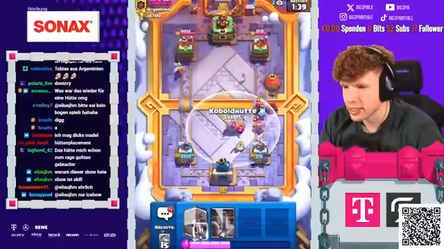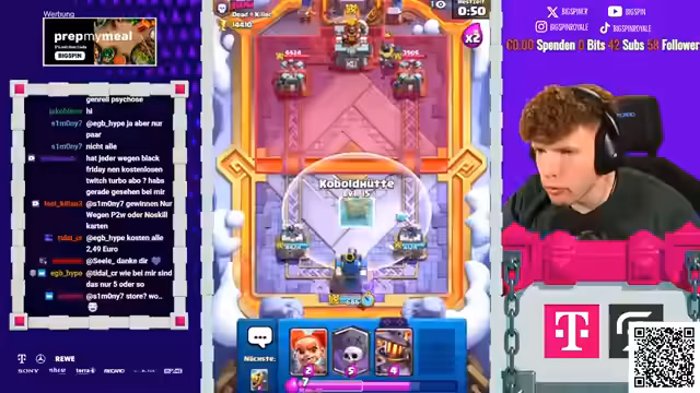 02:08:18Der Spieler äußert Frustration über das wiederholte Matchmaking gegen bestimmte Decktypen, insbesondere solche mit Holzfäller-Ballon, Mega-Ritter und Crackerin. Bestimmte Kartenkombinationen des Gegners, wie der Holzfäller-Rage in Verbindung mit dem Eisgeist, werden als „gnadenlos“ und „beschissenste Interaktion“ beschrieben, da sie unerwartet hohe Schäden verursachen. Die Notwendigkeit, den KingTower frühzeitig zu aktivieren, wird als taktischer Vorteil erkannt, um den Druck auf den Gegner zu erhöhen. Es werden Strategien entwickelt, um Miner- und Wallbreaker-Kombinationen zu begegnen, indem Hütten defensiv platziert oder spezifische Einheiten wie die Berserkerin eingesetzt werden. Die Levelunterschiede bei Karten wie dem Poison werden als entscheidender Faktor für den Ausgang der Spiele identifiziert, was die Bedeutung eines ausgeglichenen Decks unterstreicht.