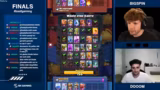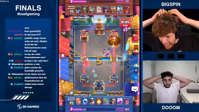05:15:37Das Finale beginnt mit einem Best-of-3 zwischen Skyrus und Draft. Beide Spieler wählen Decks mit Bait-Strategien, Skyrus mit Dart Goblins und Draft mit Pumpen. Es kommt zu knappen Spielzügen, wobei Skyrus fehlerlos agiert. Draft konzentriert sich stark auf seine Boss-Banditen-Karten. Trotzdem gewinnt Skyrus das Finale, während Draft Zweiter wird. Das Turnier ist damit beendet.