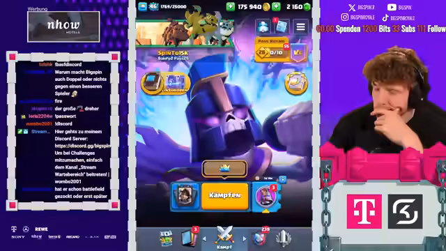 00:19:17Während der Challenge gegen Max analysiert der Streamer die gespielten Matches und gibt wertvolle Gameplay-Tipps. Er erklärt, warum bestimmte Karten wie der Fischer oder der Gravedigger gegen bestimmte Decks wie den Royal Ghost entscheidend sein können. Er kritisiert auch schwächespiele, wie den falschen Einsatz des Grabsteins als Kobold-Hütte, und gibt Einblicke in strategische Überlegungen, wie z.B. das richtige Timing von Karten wie dem Freeze oder die Notwendigkeit von Schadenskarten (High-DPS).