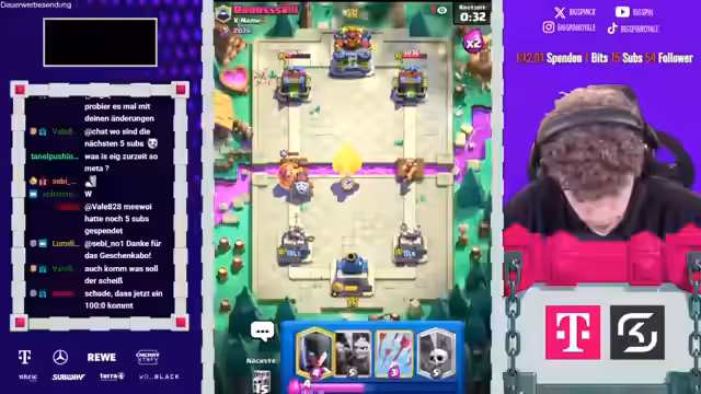 Auf bigspincr erwartet die Zuschauer ein abwechslungsreiches Clash Royale Programm. Im Fokus steht das 'Ich gegen Euch' Event, bei dem Community-Mitglieder gegeneinander antreten. Zuvor werden innovative Mid Ladder Decks vorgestellt und in actionreichen Matches getestet. Ein Copy Deck Duell gegen Zodiac verspricht zusätzliche Spannung und strategische Tiefe.