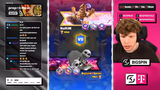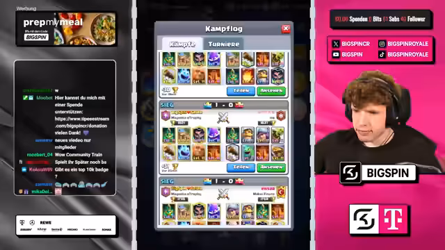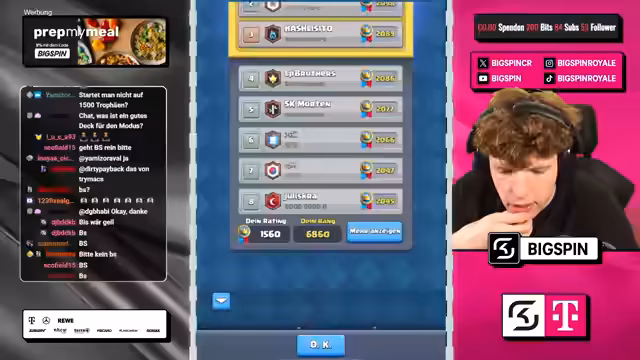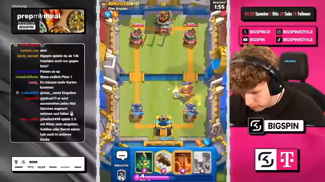 05:23:54Nach einer Phase mit mehreren Siegen im Speedrun-Modus, darunter ein knapper Sieg durch strategisches Verhindern von Gegner-Value, konnte der Streamer in der Weltrangliste deutlich aufsteigen. Durch eine Siegesserie kletterte er auf Platz 7 der Welt. Dabei wurde die Stärke eines speziellen Decks betont, das seit dem Erreichen von 1800 Trophäen konstant zu überzeugenden Ergebnissen führt und in dieser Zeit eine beeindruckende Steigerung von 300 Trophäen ermöglichte.