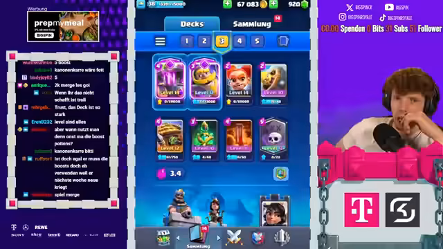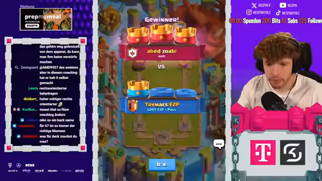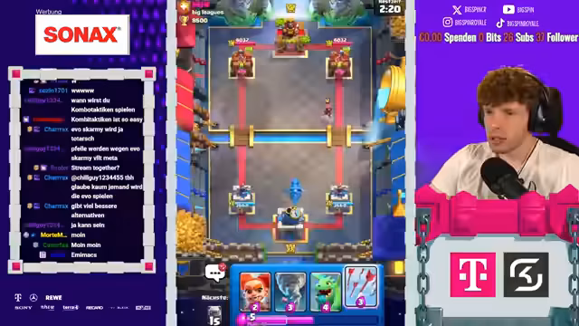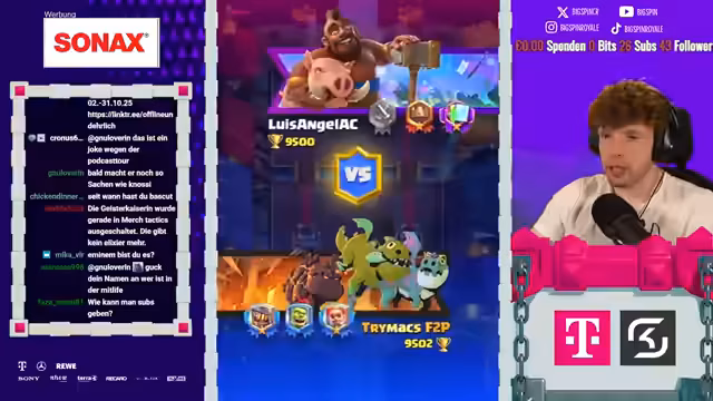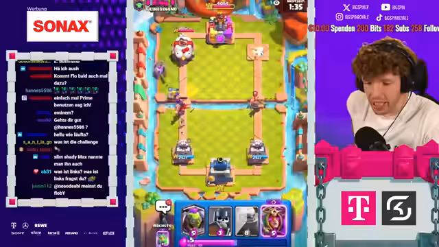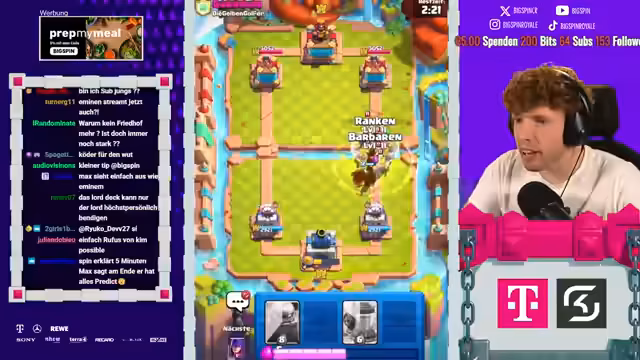 00:00:00Der Stream beginnt mit der Begrüßung des Chats und dem Einrichten der technischen Voraussetzungen. Nachdem der Countdown aktiviert wurde, startet der Streamer direkt in das Spiel Clash Royale. Er erwähnt den gestrigen Support als sehr erfolgreich und zeigt sich hochmotiviert für den heutigen Inhalt, der Coaching, Merch Tactics, Free2Play-Projekte und die Förderung eines Lernern umfasst. Der Fokus liegt darauf, den Rang zu pushen und das volle Potenzial aus dem Tag zu ziehen.