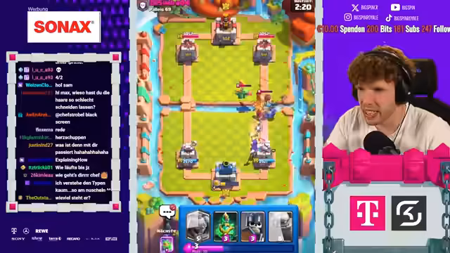 05:35:17Der Streamer zeigt sich zunehmend frustriert über wiederholte, kritische Fehler, insbesondere bei der defensiven Platzierung der Hexe-Karte. Er stellt die Fähigkeiten des Spielers in Frage, da dieser es nicht schafft, die Hexe korrekt zu platzieren, um Angriffe wie den des Mini-Pekka zu kontern. Der Spielausfall führt direkt zum Verlust des Spiels, was den Streamer zu einer drastischen Maßnahme bewegt: der Anordnung eines expliziten Hexen-Coachings, um dieses fundamentale Problem zu lösen und die Grundlagen des Karteneinsatzes zu festigen.