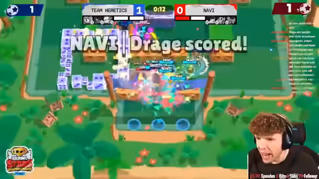 05:19:43Im Halbfinale zwischen Semantec und Humble kommt es zu einem dramatischen Verlauf. Semantec gelingt durch eine clevere Taktik mit der Hypercharge des Brawlers Rico der Ausgleich zum 1-1. Später nutzt Humble jedoch einen schweren Fehler der Semantec-Spieler, als der Ball nicht aufgenommen wird, und geht mit 2-1 in Führung. Das Match ist intensiv und zeigt die hohe Qualität beider Teams.