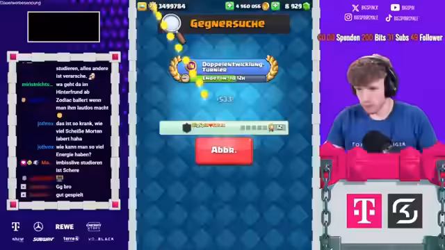 01:51:40Neben dem Spielgeschehen beschäftigt sich der Streamer intensiv mit der Verwaltung seines Clans 'Raucherpause'. Er liest diverse Einladungen und Anfragen im Chat ab und nimmt neue Mitglieder auf, während er gleichzeitig über die bizarre Clan-Namensgebung und die damit verbundenen Konflikte diskutiert. Diese Ablenkung führt zu Fehlern im Spiel, wie einen verpassten Dark Rubens-Splash. Die technische Herausforderung, ein laufendes Video zu schneiden, kollidiert mit der Konzentration auf das Spiel, was zu einer gestressten und unkoordinierten Spielweise führt und schließlich zum Verlust eines Games.