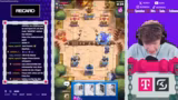 00:45:09Der Streamer kommentiert, dass das aktuelle Deck scheinbar eher mit der Prinzessin gespielt wird und betont, dass bei diesem Deck stumpfes Spammen Trumpf ist, um den Gegner mental zu zermürben. Er setzt Warbacker und Guards ein, während der Gegner mit einem Henker kontert. Der Streamer fragt sich, wie er einen Henker verteidigen soll, da der Gegner auch einen Mönch hat. Er setzt Rekruten ein und beobachtet die Reaktion des Gegners. Der Gegner zeigt Pfeile, was die Situation komplexer macht. Der rechte Turm des Streamers ist fast gefallen, während der Gegner mit einem Golem an der Brücke angreift. Der Streamer benötigt dringend Elixier und beschreibt das Spiel als chaotisch und unübersichtlich. Er bemerkt, dass die Türme des Gegners ebenfalls gefährdet sind und es zu einem wilden Schlagabtausch kommt. Der Gegner setzt Guards ein, was der Streamer als vernünftige Karte anerkennt. Der Streamer plant einen Gegenangriff und hofft, dass dieser zum Untergang des Gegners führt. Der Gegner hat noch einen Elektro-Drachen im Deck, der jedoch wenig bewirkt. Der Streamer freut sich über einen Tower-Trade und plant, den Gegner weiter unter Druck zu setzen.