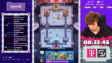 04:45:36Ein Matchup gegen ein MK-Deck beginnt, bei dem der Streamer einen frühen Vorteil erlangt, indem er den gegnerischen Ritter zweimal trifft. Anstatt den Vorteil sofort auszunutzen, entscheidet er sich dafür, den Königsturm zu aktivieren, um das Spiel in die dreifache Elixir-Phase zu bringen. Dort setzt er einen gezielten Poison-Push ein und nutzt seine defensiven Karten wie Bubble und Ritter, um dem Gegner keine Chance zu lassen, einen Gegenangriff zu starten und damit das Spiel souverän zu gewinnen.