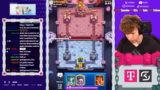 04:14:43Der Streamer ist in einem anspruchsvollen Matchup, dem er mit einem strategischen Vorgehen begegnet. Er analysiert das gegnerische Deck als Lockbait mit Inferno-Turm, Guards und Mighty Miner. Trotz eines anfänglichen Damage-Nachteils von 2000 nutzt er das Poison-Schadenssystem, um langsam aber stetig Druck aufzubauen und versucht, gegnerische Pushes zu stoppen, während er nach Fehlern des Gegners sucht. Die anhaltenden Angriffe des Gegners und dessen perfekte Kartenwahl stellen den Streamer vor erhebliche taktische Herausforderungen.