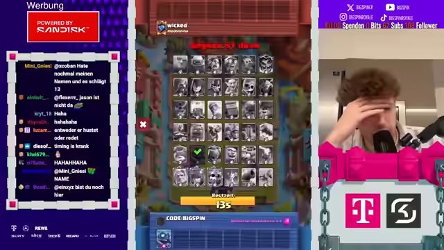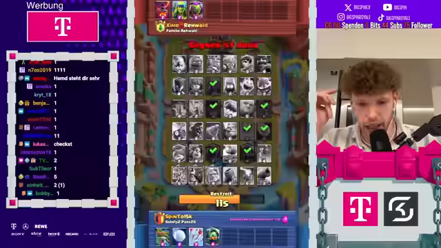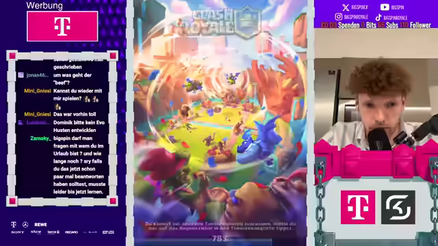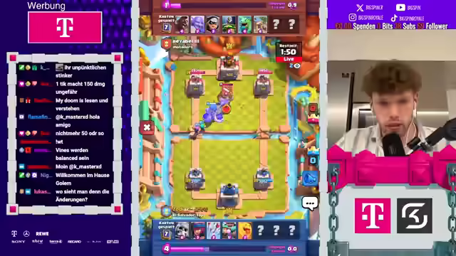 00:08:52Um 20:30 Uhr soll die Mega-Auswahl beginnen. Der Streamer revidiert seine Aussage über normale Decks, da der Gegner ungewöhnlich spielt. Er vergisst, dass der Gegner einen Scherendrachen hat. Es wird empfohlen, sich das neue Video anzusehen, um Informationen über die Balance-Änderungen zu erhalten. Der Streamer spielt gegen Evo-Valkyra, was er als wild bezeichnet. Er verliert das Spiel und äußert Frustration über die Kombination aus Hawk, Freeze und Full Level 15 Valkyrie. Der neue Plan ist, dass die Mega-Auswahl um 20:30 Uhr stattfindet. Der Streamer möchte für die Zuschauer gewinnen und bedankt sich für die Unterstützung. Er streamt aus der Küche und scherzt darüber, dass er vielleicht bald vom Balkon streamen kann, wenn mehr Zuschauer einschalten.