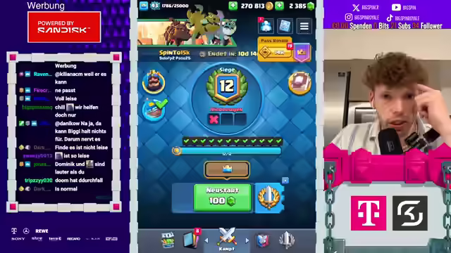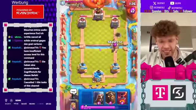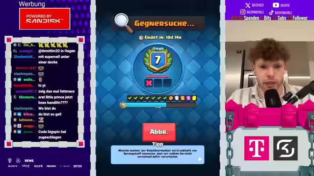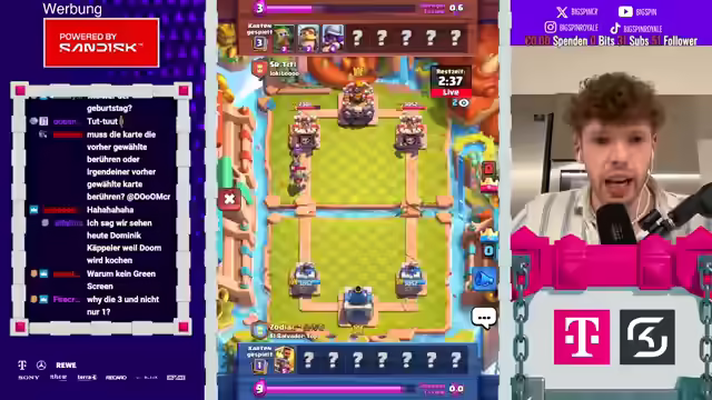 01:58:04Der Streamer berichtet, dass er häufig auf der Straße angesprochen wird, hauptsächlich wegen der Subway-Werbung. Lukas hat Platz 10 der Weltrangliste erreicht, Zodiac Platz 12, was zu der Aussage führt, dass Clash Royale tot sei. Es wird ein Spiel gegen Morten erwähnt, bei dem der Streamer verliert. Anschließend nimmt der Streamer an einer Challenge teil, bei der er jedoch schlechte Karten bekommt. Die Balance-Änderungen werden als schmerzhaft empfunden, und der Streamer erwartet eine schlaflose Nacht. Es wird über ein Video des Streamers diskutiert, in dem er auf eine schlimme Season-Anzeige reagiert hat. Der Streamer äußert seinen Unmut über die zufälligen Karten, die er erhält, und fordert Änderungen von Supercell. Es wird über mögliche Reworks für bestimmte Karten diskutiert, insbesondere für den Barbaren-Turm. Der Streamer wird von Zodiac als "Aids" bezeichnet, was zu einer Diskussion darüber führt, wer von beiden "Aids" ist.