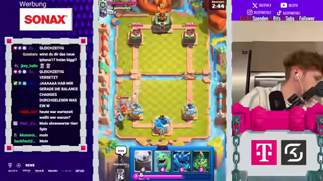 02:52:33Es wird überlegt, ob man nach dem Duell noch Leather spielen soll, und der Chat wird einbezogen. Nach dem Duell plant der Streamer schlafen zu gehen. Die Wahl der Karten für das nächste Spiel wird besprochen, wobei Pfeile und Lock als notwendig erachtet werden. Der Streamer wägt ab, ob er Heilerin oder Giant picken soll und entscheidet sich schließlich für Heilerin. Die potenziellen Konsequenzen der Kartenwahl des Gegners werden analysiert, und es wird spekuliert, dass dieser Drill oder Feuerball wählen wird. Der Streamer bewertet RG als eine gute Wahl und besser als Frito. Die Strategie gegen die Hütte des Gegners wird diskutiert, und es wird überlegt, wie man diese mit einer Widderrad angreifen kann. Der Spielstil des Gegners wird als 'Star-Rage-Baid' eingeschätzt, und der Streamer lobt seine eigene Spielweise. Er freut sich über die vermeintlich schwachen Gegner und kündigt das nächste Duell an.