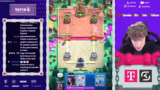 00:02:51Der Fokus liegt auf mehreren Spielen im Clash Royale. Der Streamer analysiert die gegnerischen Decks, die hauptsächlich aus defensiven X-Bögen, Mini-Pekka und der Königin bestehen, als sehr herausfordernd und frustrierend. Er beschreibt, wie diese Decke ihm schweren Schaden zufügen und er kaum Gegenmittel hat. Einige Spiele werden gewonnen, indem man den Gegner mit Druck von zwei Lanes überfordert, während andere Spiele durch effektives Verteidigen und das Ausspielen starker Karten wie dem P.E.K.K.A. und dem Magier gewonnen werden.
