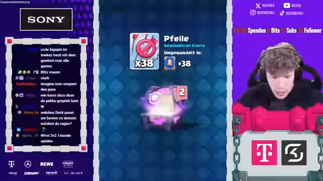 00:38:01Einige der gespielten Partien werden als äußerst herausfordernd und spannend beschrieben. Es gibt Duelle, die bis aufs Messer gehen, bei denen der Schadensvorteil ständig wechselt. Ein Gegner spielt ein starkes Ritter-Skelett-Deck, während andere mit Wildcards und Minern agieren. Der Streamer betont die mentale Stärke, die in diesen langen, nervenaufreibenden Duellen erforderlich ist, und ist von einigen Siegessituationen begeistert.