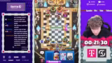 02:20:54Das Gameplay setzt sich mit mehreren weiteren 2vs2-Spielen fort, wobei der Streamer und sein Partner Alex durchweg erfolgreich agieren und die Medaillenanzahl kontinuierlich steigern. Die Spiele werden von einem ständigen Wechsel zwischen defensiven und offensiven Zügen, dem Einsatz von Spezialkarten wie dem Pekka und dem Skeleton King sowie der Verfolgung von Siegbedingungen durch Schaden am King Tower bestimmt. Der Streamer interagiert dabei mit den Zuschauern, erwähnt eine hohe Medaillenbilanz und kritisiert das Verhalten eines egoistischen Mitspielers.