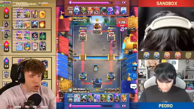 03:04:46Die dritte Partie zwischen Sandbox und Pedro entwickelt sich zu einem packenden Duell, in dem Sandbox mit einem unkonventionellen RG-Deck überrascht, das jedoch aufgrund fehlender wichtiger Karten wie Log und Barbarenfass nicht optimal funktioniert. Pedro nutzt dies geschickt aus und fügt mit seinem Royal Giant erheblichen Schaden zu. Trotz einiger guter Züge von Sandbox, wie dem Einsatz des Wurzelzaubers, kann Pedro den Vorteil behaupten und das Spielgeschehen kontrollieren. Ein entscheidender Fehler von Sandbox ermöglicht es Pedro, das Spiel zu drehen und den Sieg davonzutragen. Durch präzise Spielzüge und den geschickten Einsatz seiner Truppen sichert sich Pedro den Sieg und verkürzt den Rückstand in der Serie. Die Kommentatoren analysieren die Deckwahl von Sandbox und betonen die Bedeutung der richtigen Kartenkombination für den Erfolg in solchen entscheidenden Spielen. Die Partie endet mit einem Stand von 1:2 aus Sicht von Pedro, was die Spannung für die kommenden Spiele weiter erhöht.