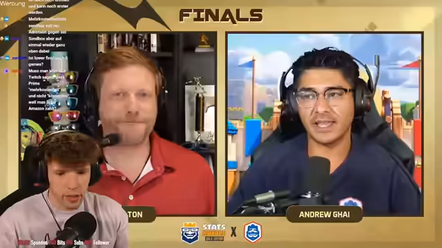 03:49:55Das große Finale beginnt mit einem Doppel-Kanonen-Mann-Duell zwischen Ian und Pedro. Pedro muss nur ein Best of Five gewinnen, um sich als Champion des letzten Monthly Finals zu krönen, während Ian zwei gewinnen muss. Ian setzt auf Hexe und Walküre, was auf ein Graveyard-Deck hindeutet, während Pedro auf Mortar setzt. Es wird diskutiert, dass es für Pedro nicht leicht wird, gerade mit den Kanonenmännern. Ian hat mit der Walküre, dem Eismagier und der Hexe sehr gute Antworten. Der Skelly King wird auf der rechten Lane eingesetzt, und die Goblin Gang kommt rein. Es wird überlegt, ob es ein Barb Barrel oder Poison geben wird. Evo-Morta wird links eingesetzt, und Miner steigt auf Eis bis. Die Hexe bekommt viel Value. Es wird nicht gesehen, wie Pedro verteidigen soll. In der dreifachen Dixierphase ist die Primetime der Scrafer Decks. Ian setzt einen Eismagier ein. Der Kanonier gegen Hexe ist ultra belastend für Pedro. Es müssen Hexe, Minions oder ähnliches kommen. Die Hexe macht das gut mit den Skellys. Ian liegt weiterhin hinten. Die Hexe bekommt gute Value und bohrt auch eine Evo-Walk rein. Poison wird instant kommen und gute Value sein. Es ist so viel Schaden. Ein einziger Graveyard ändert hier die Gemengelage völlig. Es wird nicht mehr Comebacken. Das war sehr abgezockt von Ian. Es wird ein Win für Ian werden. Ian hat so gute Antworten mit Hexe, Eismager und Walküre. Damit steht es 1-0 für Ian. Ian muss aber noch zwei Best-of-Fives gewinnen.