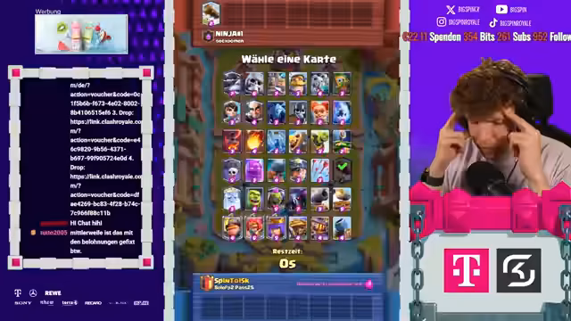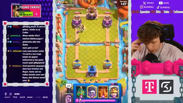 06:03:47Eine neue Partie beginnt, in der keine Karten gewählt werden dürfen. Clash Royale stellt das Deck nach dem Zufallsprinzip zusammen. Es wird versucht, jedes Spiel so gut wie möglich zu gewinnen. Die Boss-Banditin ist eine fantastische Karte. Es wird darum gebeten, einen Daumen nach oben dazulassen und den Code Big Spin zu verwenden. Der Code geht jede Woche einmal raus. Der Gegner hat einen Packer und einen Sepp. Es wird sich eine Kanonenkarre gewünscht und der Runenriese bekommen. Die zweite Karte ist die absolute Ur-Giga-Allesschere. Es wird sich gefragt, wie das Spiel gehandelt werden soll. Der Gegner weint einfach. Sperrkobolde sind in Ordnung. Der Gegner hat einen Sparky. Es wird sich gefragt, wie gegen Pekka Sparky gewonnen werden soll. Es wird eine Lufteinheit benötigt. Die Kanonkarre ist ein Game Changer. Der Gegner könnte trotzdem ballern. Es wird auf Mega Minion oder Baby Dragon gehofft. Der Bombenturm ist auch nicht die allerschlechteste Karte. Der Gegner pickt das Megaminion und den Henker. Es wird eine Long-Range-Einheit gegen seinen Megaminion benötigt. Eine Musketierin wäre geil. Der Feuerball kriegt in diesem Match leider relativ wenig Value. Eine Musketierin wäre geil. Wallbreaker sind auch dabei. Das Deck sieht auf den ersten Blick gar nicht mal so schlecht aus. Es ist aber leider extrem schlecht. Es gibt nichts, womit die Wallis durchkommen. Es wird ein Ofen oder sowas benötigt. Es wird sich ein Ofen gewünscht und der Ofen bekommen. Es gibt zwar nichts gegen Pekka, aber es wird gehofft, dass irgendwie gewonnen werden kann. Das Deck ist gegenüber dem Start auf jeden Fall schon ein bisschen besser geworden. Es wird gehofft, dass der Gegner keinen Zapp im Cycle hat. Es gibt ein fettes Problem, wenn der Pekka kommt. Es wird gehofft, dass kein Pekka kommt. Der Gegner dachte wahrscheinlich, dass ich 11k bin.