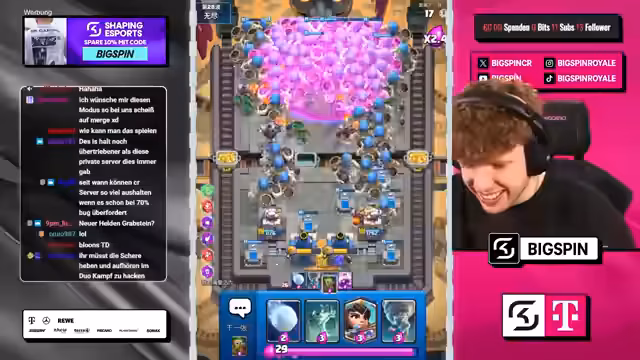 02:29:24Das Spiel wird von wachsender Frustration geprägt. Der Streamer beschreibt ein Match-up gegen ein 3M-Deck (Mega Knight) als besonders problematisch, da er zwar weiß, was der Gegner tun wird, aber keine effektive Gegenmaßnahme hat. Er äußert Unmut über die prevalence bestimmter Meta-Decks wie Bowler und Graveyard, die er als frustrierend und schwer zu kontern empfindet, und verliert am Ende das Game.