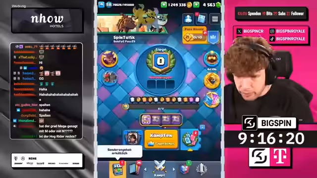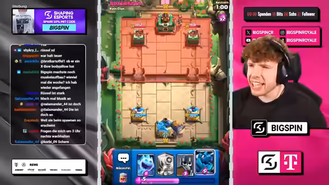 00:02:40Der Streamer berichtet über einen gesundheitlichen Rückschlag aufgrund einer Nasennebenhöhlenentzündung, die seinen Tag stark beeinträchtigt hat. Er ist aber zuversichtlich, dass er wieder fit für den Stream ist. Es wird mit dem Timer gestartet und der Fokus liegt auf einem bestimmten Deck, das die Hexe, den Bombenturm, den Ofen, den Bogen und den Ritter umfasst. Das Ziel ist es, aggressiv in die GC einzusteigen.