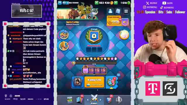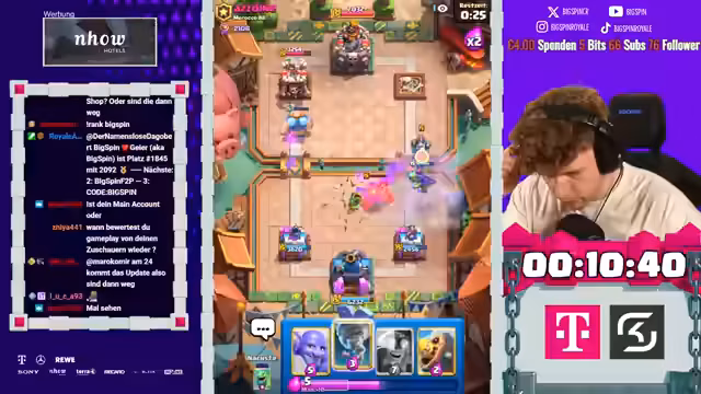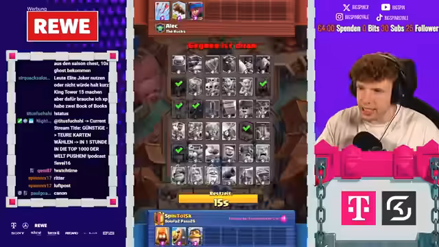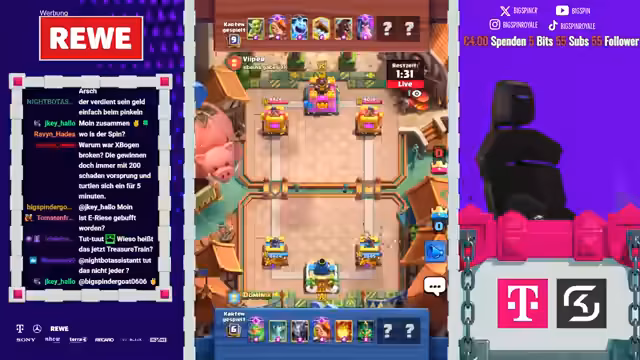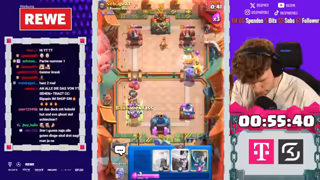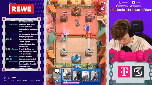 00:02:06Der Streamer beginnt mit der Vorstellung des heutigen Formats, bei dem er in Clash Royale günstige und anschließend teurere Karten wählen muss. Das Ziel ist es, innerhalb einer Stunde von Rang 5.000-6.000 in die Top 1.000 der Welt aufzusteigen. Die Regel besagt, dass nach der ersten günstigen Karte jede folgende Karte mindestens ein Elixier mehr kosten muss als die zuvor gewählte. Dies erfordert strategisches Denken bei der Deckzusammenstellung. Ein technisches Problem mit dem Chat-Overlay wird schnell behoben, und der Streamer bedankt sich für die Unterstützung, während er sich auf die erste Partie vorbereitet. Er betont die Bedeutung des Creator-Codes für seine Zuschauer und die tägliche Bereitstellung von Clash Royale-Inhalten.