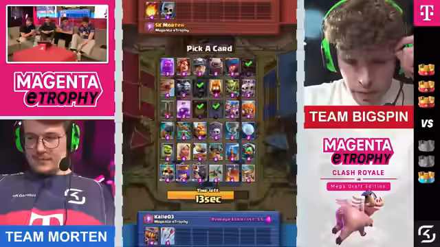 03:11:30Das letzte Spiel zwischen Big Spin und Morten war geprägt von defensiven Taktiken und dem Versuch, über Truppen wie Golem oder Skelley King in das gegnerische Spiel zu kommen. Morten setzte auf Bait-Strategien und Karten wie Kanonenkarre, um Kalle unter Druck zu setzen. Kommentatoren analysierten die Drafts intensiv und hoben hervor, dass trotz hoher Spielstärke oft die eine perfekte Karte oder der korrekte Zeitpunkt den Unterschied im Sieg oder in der Niederlage machte.