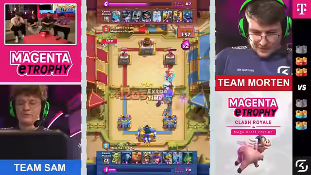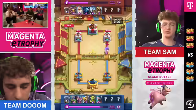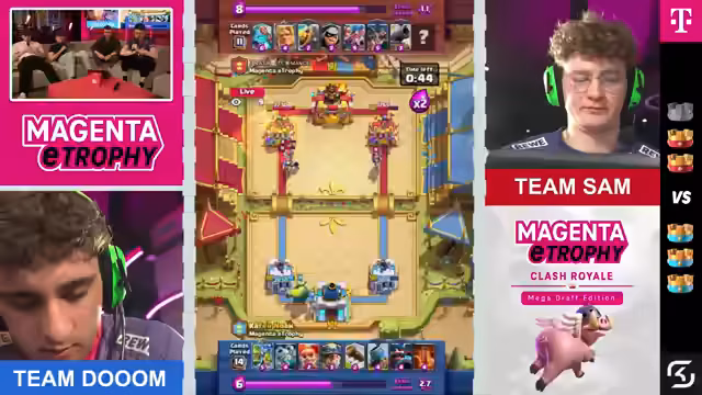 05:39:00Team Sam gewinnt das Grand Final und sichert sich den Titel des Magenta E-Trophy Clash Royale Champions 2026. Der Spieler Max aus Team Sam wird als MVP des Finales gefeiert, da er mehrere entscheidende Spiele für sein Team gewinnen konnte. Das Siegerteam erhält einen Preis von 3000 Euro pro Spieler, während das zweitplatzierte Team 1000 Euro pro Spieler erhält. Das Turnier wird als überaus erfolgreiches und spannungsgeladenes Event bewertet, das bei Spielern und Zuschauern für große Begeisterung sorgte.