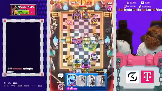 09:45:54Während des Spiels zeigt sich deutliche Frustration des Streamers über unfaire Spielzüge und unerwartete Entwicklungen. Er äußert sich wütend über einen gegnerischen Durchbruch und beschreibt das Gameplay als verrückt und unfair. Trotzdem motiviert er sich und seinen Partner weiter, wie er bei einem späten Königstower-Push zeigt. Die Stimmung ist geprägt von Euphorie bei Erfolgen und Wut bei Rückschlägen, was zu einer sehr emotionalen und nervösen Spieldynamik führt.