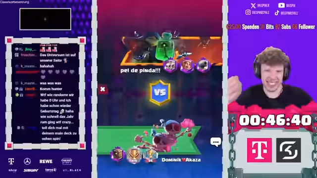 01:00:06Der Streamer gewinnt weitere Spiele und steht nun bei einem Spielstand von 4-2. Er spricht über seine Partnerschaft mit Core Big Spin und die Möglichkeit für Zuschauer, ihn zu unterstützen. Trotz des Erfolgs erlebt er auch Rückschläge, wie z.B. einen Gegner, der ausweicht und ein verlorenes Spiel, was ihn frustriert. Er äußert sich über die Notwendigkeit, Gems auszugeben, um weiterspielen zu können, und kritisiert die Spielmechanik. Trotz der Frustration gibt er nicht auf und versucht, mit seinem aktuellen Deck das Beste aus der Situation zu machen. Er analysiert die gegnerischen Strategien und versucht, Schwächen auszunutzen, um seine Gewinnchancen zu erhöhen. Der Streamer zeigt sowohl seine Erfolge als auch seine Misserfolge und teilt seine Emotionen mit den Zuschauern.