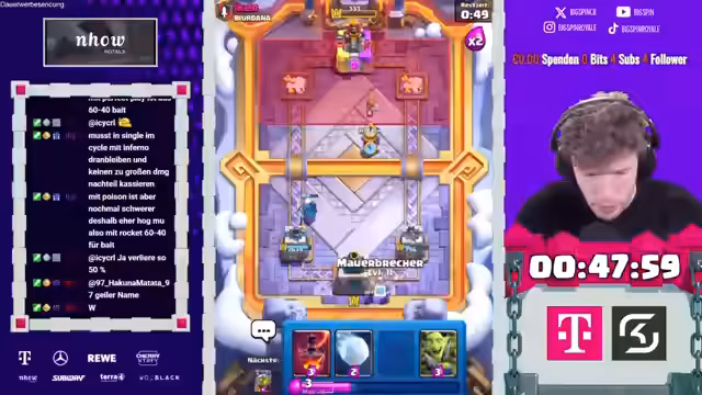 bigspincr testet Clash Royale mit linken Karten und stellt sich Herausforderungen