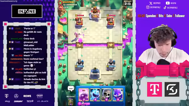 00:08:45Der Streamer beginnt eine neue Partie gegen einen Gegner, der ebenfalls den Lumbercake spielt, was zu einem Spiegelmatch führt. Er setzt den Eisgeist ein, um den gegnerischen Lumberkack zu kontrollieren und den eigenen Angriff vorzubereiten. Der Streamer erklärt, dass der Gegner sein Deck noch nicht vollständig verstanden hat und setzt den Wutzhörer ein, um Druck auszuüben. Er kommentiert, dass das Spiel des Gegners von schlechten Entscheidungen geprägt ist und dass sein eigenes Spiel eine Farce ist, obwohl es funktioniert. Der Streamer verteidigt sich gut und versucht, den Gegner auszukontern, indem er seine Einheiten strategisch platziert und den Wutzauber einsetzt, um die Brücke zu kontrollieren. Er erklärt, dass das Ziel ist, den Gegner so lange zu verteidigen, bis der Evo Holzfäller den entscheidenden Vorteil bringt. Der Streamer passt seine Taktik an und versucht, den Gegner mit einer wütenden Zauberbrücke zu überraschen.