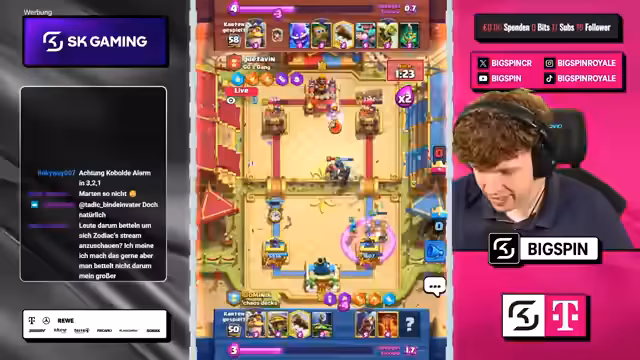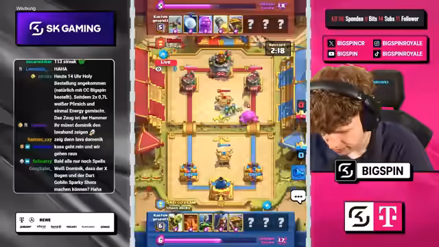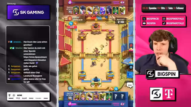 Es wurde ein Duell im Spiel Clash Royale veranstaltet, das durch ungewöhnliche Regeln geprägt war. Teams mussten nach jedem Match indirekt Karten tauschen und mit zufälligen Spiel-Modifikatoren umgehen. Nach anfänglichen Verwirrungen und technischen Verzögerungen gelang einem Team ein beeindruckendes Comeback von 0-3, um das Duell für sich zu entscheiden.