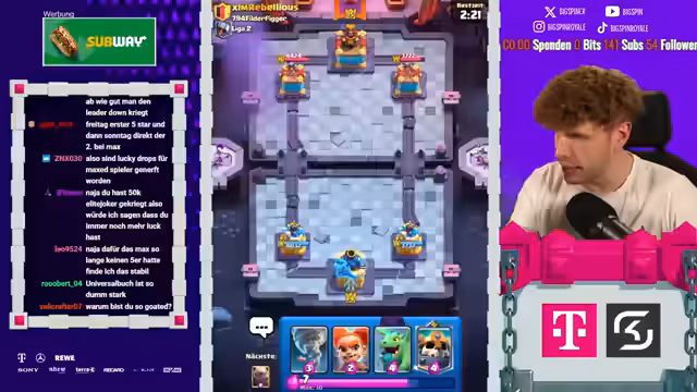02:50:40Der Streamer interagiert stark mit der Community im Chat und beantwortet Fragen zur Taktik und zum Spielverlauf. Er diskutiert aktuelle Meta-Entwicklungen, wie zum Beispiel den Einsatz von bestimmten Truppen wie der Valkyrie oder dem Pekka. Auch die Performance im Ranking wird angesprochen, wobei der Streamer stolz darauf ist, nur sehr wenige Spiele in den letzten Runden verloren zu haben. Die Eindrücke der Zuschauer werden regelmäßig in die Analyse einbezogen.