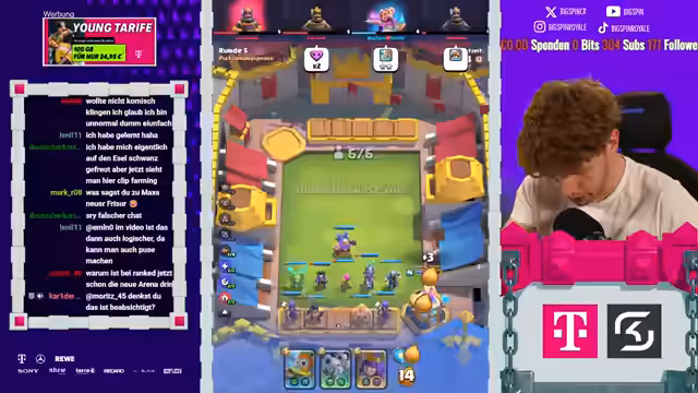 00:00:00Der Stream nach einer Woche Urlaub wurde gestartet. Es wurde ein neues Clash Royale Update angekündigt, das Free-to-Play-, Pass- und Merch Tactics-Inhalte umfasst. Die Hauptziele des heutigen Streams sind das Erreichen der dritten Karte auf Level 15 auf einem F2P-Account, das Klettern in der Rangliste und das Spielen von Merch Tactics.