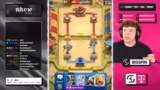00:40:57Nach dem Sieg wechselt der Streamer zu einem Royal Giant Deck. Das erste Spiel damit verläuft suboptimal, da der Gegner einen unerwarteten Royal Giant spielt. Der Streamer erkennt einen Fehler in seinem Spielstil, der zu einem Elixierverlust und einer schlechten Positionierung der Truppen führt. Obwohl der Streamer versucht, mit einem Fischer und einem Ghost die Initiative zurückzugewinnen, gelingt es dem Gegner, den Royal Giant effektiv zu schützen und die Situation zu seinen Gunsten zu nutzen, was letztendlich zum Verlust des Spiels führt.