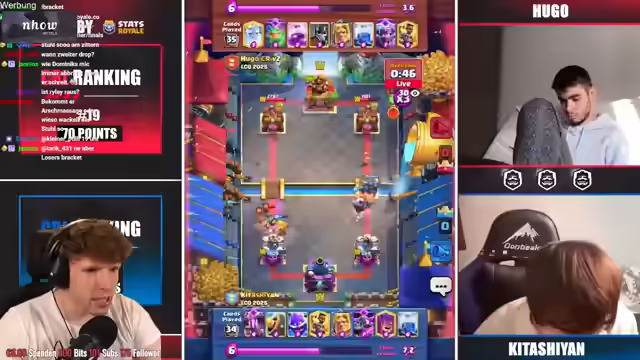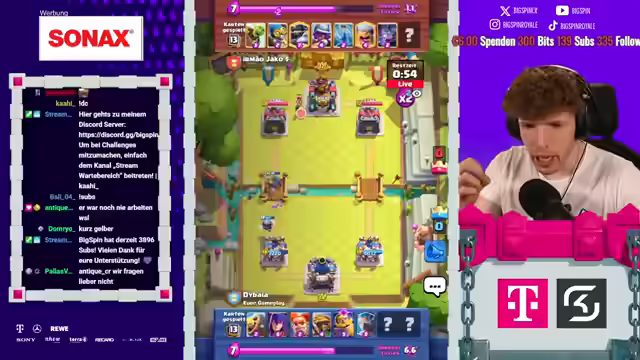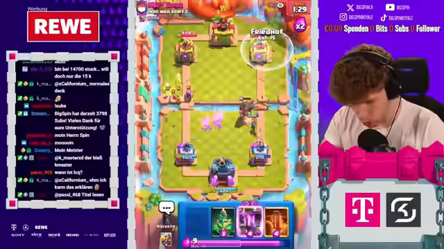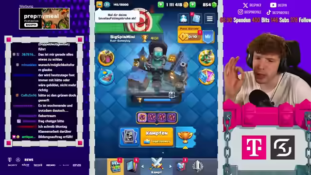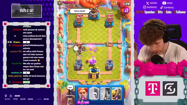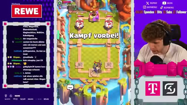 00:00:40Es steht ein intensiver Ladder Push an, nachdem es in letzter Zeit etwas ruhiger war. Es wird ein toller Stream mit einem attraktiven Programm versprochen. Zusätzlich werden Free-Sachen in Form von Lucky Drops verlost. Der Fokus liegt auf dem Aufstieg in der CL. Im ersten Matchup gegen Mr. Reza zeigt sich, dass der Streamer die Crackerin des Gegners gut kontert und durchdachte Spielzüge macht, um den King Tower zu aktivieren. Trotz kleinerer Ungenauigkeiten im Spiel, wie der Platzierung der Hütte und Walküre, behält er die Kontrolle und gewinnt dank eines Fehlers des Gegners und strategischem Einsatz von Vines und Ofen in der dreifachen Elixierphase. Der erste Sieg wird gefeiert und weitere sollen folgen.