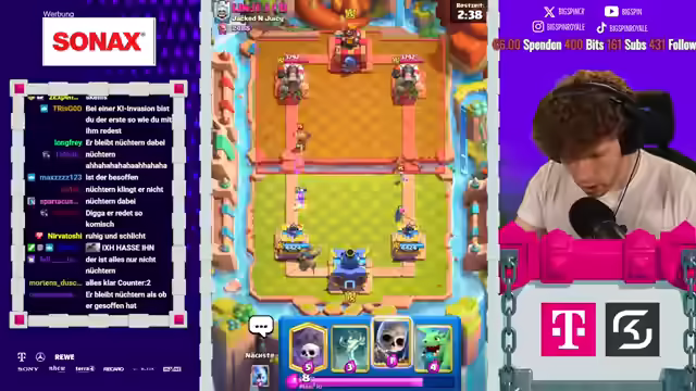 06:38:21Der Streamer experimentiert mit ostdeutschen und sächsischen Dialekten, während er gleichzeitig Deck-Beratung für Clash Royale gibt. Er versucht, dem Spieler ein solides Deck zusammenzustellen, das sowohl bewährt als auch stark ist, und erklärt die Bedeutung von Win-Conditions. Trotz anfänglicher Schwierigkeiten und verlorener Spiele bleibt er optimistisch und gibt Ratschläge, wobei er sich bemüht, verständlich und hilfreich zu sein. Es werden verschiedene Deck-Kombinationen vorgeschlagen, darunter ein Pekka-Magier-Deck und ein Royal Giant-Deck, wobei der Fokus auf einfachen, aber effektiven Strategien liegt. Der Streamer betont die Wichtigkeit, nicht neutral zu sein und Decks zu wählen, die dem Spieler Vorteile verschaffen und den Gegnern schaden.