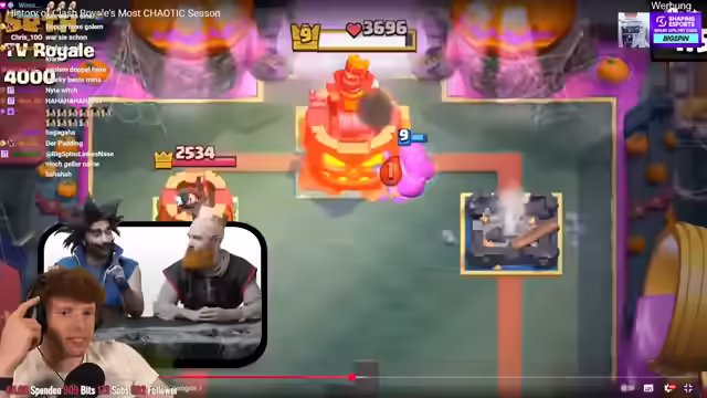 05:20:28Der nächste Kandidat, Xcreampite, tritt dem Clan bei und spielt ein Drill-Deck. Der Streamer bewertet sein Spiel und gibt ihm eine 3 mit einem Minus bis nach Bagdad, da er aus wenig sehr viel gemacht hat, obwohl es nicht sein Main-Deck war. Er lobt den Unterhaltungswert des Spiels mit einer 1+ mit Sternchen. Der nächste Kandidat, Bananenbieger, wird in den Call gezogen, aber es gibt Verwirrung, da es zwei Bananenbieger gibt. Power Orange tritt dem Clan bei und spielt mit einem Schweinereiter, Ebus, Pfeilen und den Gards. Der Streamer gibt ihm eine 4+ für sein Gameplay, obwohl er verloren hat, da er Mühe gezeigt hat.