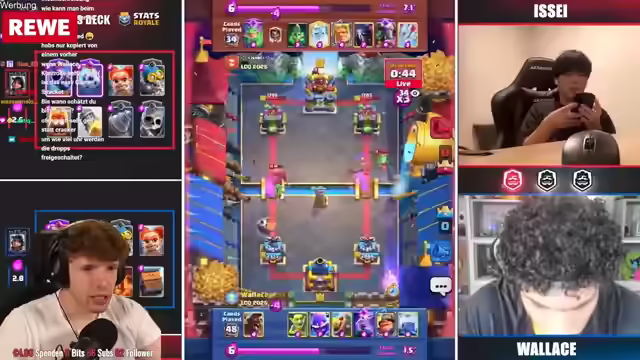 04:37:34Es wird ein Match analysiert, in dem ein Spieler ein ungewöhnliches Deck mit Pekka und Poison spielt, was Fragen nach der Strategie aufwirft. Der Streamer äußert Zweifel am Erfolg dieses Decks gegen bestimmte Matchups, insbesondere gegen Hoggies. Er kündigt an, dass es morgen wieder Drops geben wird. Issei gewinnt ein Spiel, was als Überraschung gewertet wird, da er Karten adaptiert, die unvorhersehbar sind. Es wird kurz auf die Coach-Situation eingegangen, wobei erwähnt wird, dass Coaches Decks picken und analysieren, was die Gegner spielen. Der Streamer äußert seine Abneigung gegen den 'Grünen' (vermutlich ein bestimmtes Deck oder eine Karte) und hofft, dass solche Decks bald verschwinden.