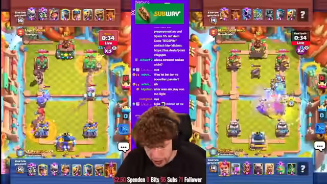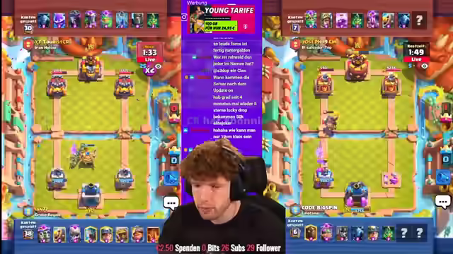 00:33:14Die letzte Stunde der Season beginnt mit einem Duell zwischen Mohamed Light und Ian um Platz 1 der Welt, beide mit exakt derselben Trophäenanzahl. Es wird die Möglichkeit eines neuen Allzeitrekords an Medaillen erwähnt. Der Streamer bittet um Unterstützung durch die Nutzung des Codes Big Spin im Shop. In der deutschen Rangliste befindet sich Dominik auf Platz 2. Das Match zwischen Ian und Mohamed Light beginnt, wobei Mohamed Light zunächst in Führung geht. Ian versucht ein Comeback, aber Mohamed Light gewinnt das Match und übernimmt die Führung. Ian startet direkt wieder ein Spiel gegen Asaph, der ein leicht anderes Deck spielt. Ian scheint im Tilt zu sein und verliert das Spiel, wodurch Asaph näher an Mohamed Light heranrückt. Es wird über Sniping-Taktiken diskutiert und die Möglichkeit, dass Asaph den Streamer snipen könnte. Der Streamer kommentiert den Timer bis zum Season End und betont die Wichtigkeit schneller Finger. Es wird festgestellt, dass es nach Seasons keine Wartungspause mehr gibt.