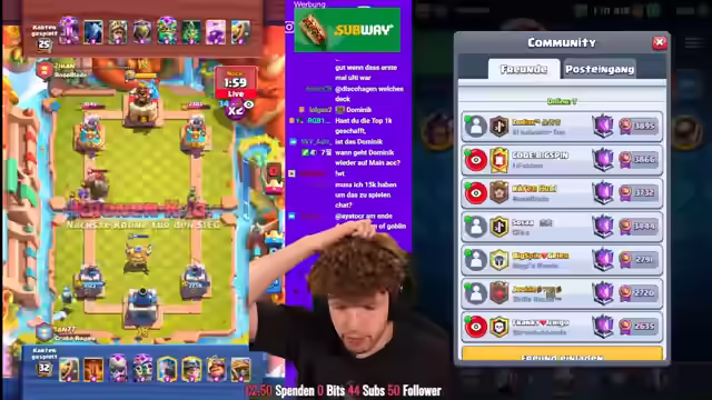 00:00:14Der Stream beginnt mit der Ankündigung einer Watchparty, bei der die Liste der Top-Spieler analysiert wird. Darunter befinden sich bekannte Namen wie Riley auf Platz 1 und DoomCR auf Platz 12. Der Fokus liegt auf einer unterhaltsamen gemeinsamen Betrachtung der Spiele. Es werden Vorbereitungen getroffen, um mit zwei Bildschirmen zu arbeiten und den Stream auf Instagram anzukündigen. Der Streamer bedankt sich für die ersten Subs und erwähnt, dass aktuell ihr auf Platz 1 ist. Es wird kurz über die Möglichkeit diskutiert, Dominik beim Spielen zuzusehen und dessen Account einzurichten. Ein interessantes Match zwischen Morten und Faust wird erwartet. Der Streamer erwähnt, dass er gestern selbst gespielt hat, aber aufgrund von Trimace-Coachings und Schlafmangel nicht sein volles Potenzial ausschöpfen konnte. Geplant ist, die neue Evo-Skami zu testen und zu sehen, ob sich damit ein starkes Deck entwickeln lässt.